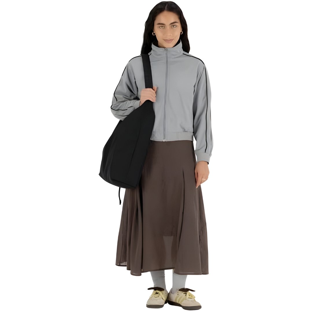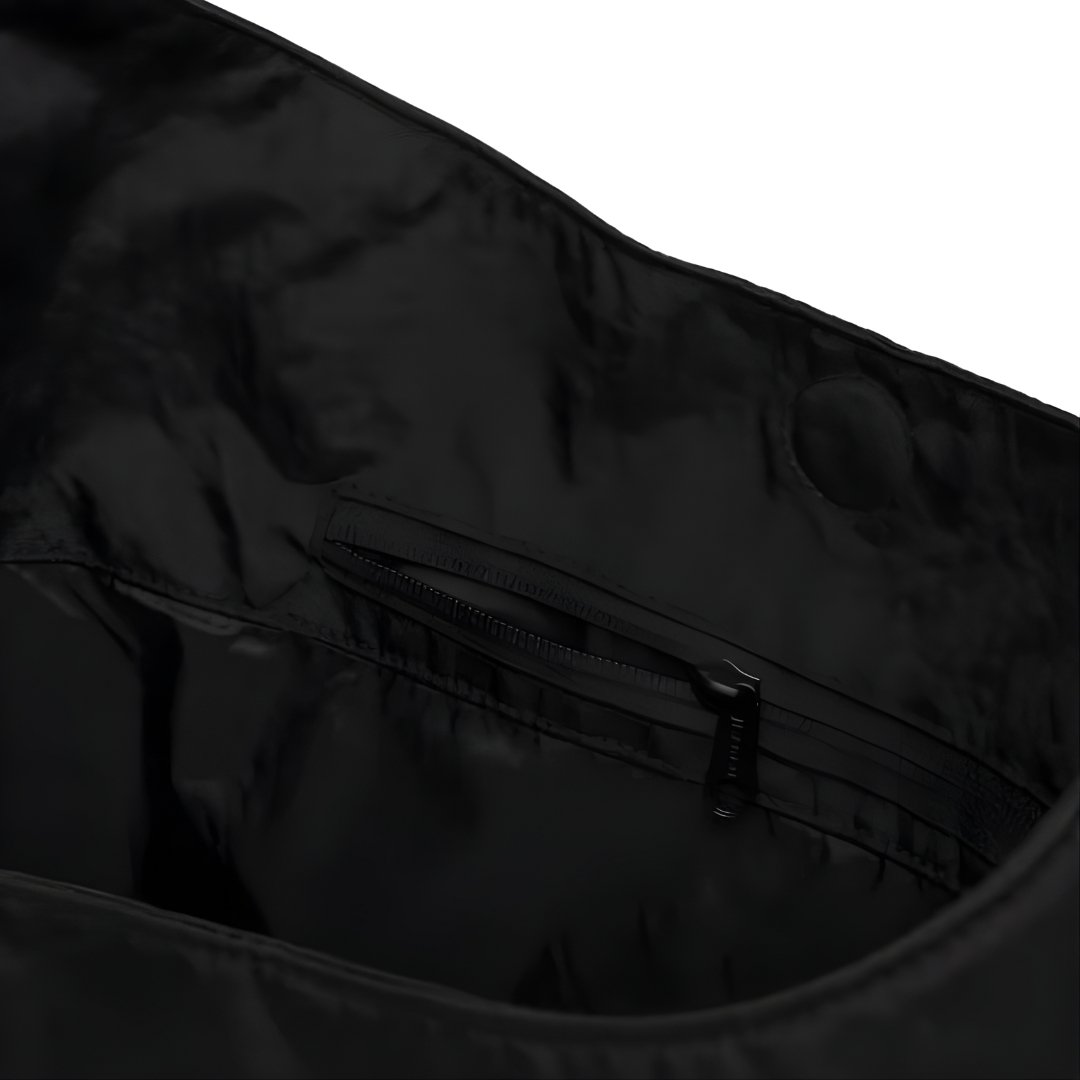 The wide shoulder strap ensures a comfortable fit throughout the day, while the additional long strap gives you multiple carrying options—wear it as a shoulder bag or crossbody for hands-free convenience. Its all-black minimalist finish ensures effortless pairing with any outfit, from casual denim looks to office attire.